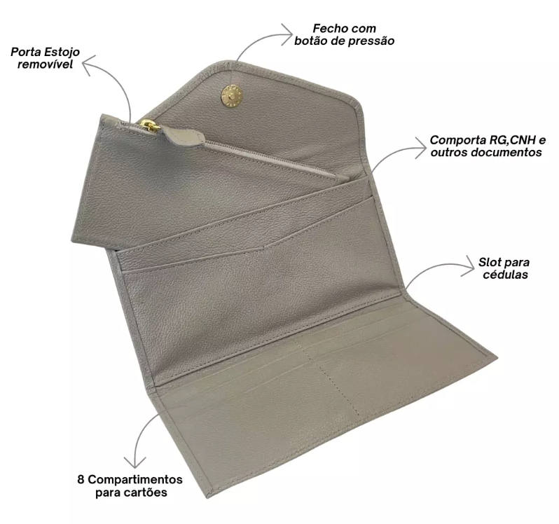 Um acessório essencial para quem busca carteira feminina em couro legítimo, elegante, funcional e sofisticada, combinando design moderno, durabilidade e alto padrão de qualidade.