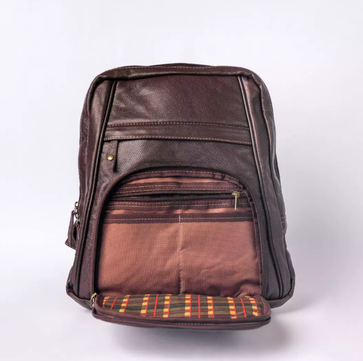 O interior possui forro xadrez moderno, que agrega charme e sofisticação ao produto. As ferragens de alta qualidade, os puxadores de zíper em couro e o acabamento cuidadoso reforçam o alto padrão e a durabilidade da mochila.
