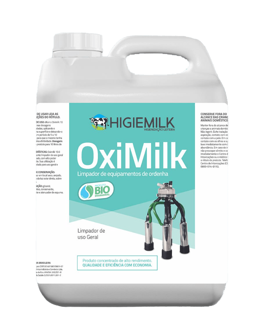 Forma de uso:. diluir de 10 a 30 ml de oximilk em água à temperatura ambiente, circular antes da ordenha de 5 a 10 minutos, após drenar e ordenhar. produto formulado para indústria alimentícia, não necessita enxágue. pode ser utilizado diluído em borrifador para sanitização de utensílios e teteiras. modo de conservação:. armazenar em local seco, arejado, ao abrigo da luz solar direta, sobre estrados.